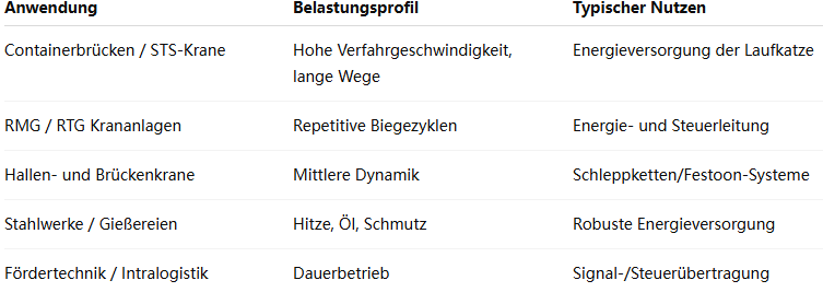 Nach Untersuchungen der International Association of Ports and Harbors (IAPH) sowie technischer Analysen großer Kranhersteller wie Konecranes und Liebherr zählen Kabel- und Energieführungssysteme zu den häufigsten ungeplanten Ausfallursachen im Kranbetrieb, insbesondere bei Hochgeschwindigkeits-Portalkranen und Containerbrücken. Ein erheblicher Anteil dieser Störungen ist nicht auf elektrische Defekte im klassischen Sinn zurückzuführen, sondern auf mechanisch induzierte Materialermüdung der bewegten Leitungen.