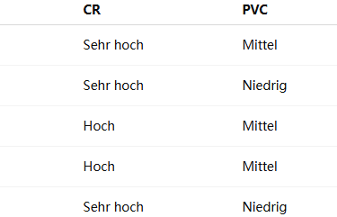 Dauerbiegefestigkeit Sehr hoch Niedrig